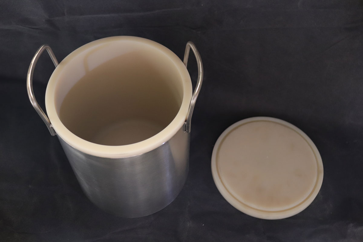 | 不锈钢内衬氧化锆罐 | 外壳:不锈钢;内衬:厚壁氧化锆 | 2.5L, 3L, 4L, 5L, 10L, 15L, 20L, 25L | 复合结构 | 内衬高硬度 | 极佳 (内衬) | 强韧结合,大容量高纯研磨方案。兼具不锈钢的结构强度与氧化锆的耐磨纯净。 | 大批量、长时间运行的高纯度物料生产,如电池材料、电子陶瓷粉体的中试与量产。 | 忌:极端情况下内衬可能因应力损坏(概率低)。 |